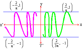 \ The graph of y = sin lies between y = -1 and y = +1 and oscillates up and down very rapidly as x®0. This behavior of the function is expressed by saying that the limit of f(x) as x®0 DNE and it is further described by saying that f(x) is oscillatory, the limits of oscillation being -1 and +1.