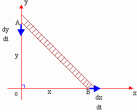 Example 42 The top of a ladder 20 units long is resting against a vertical wall and its foot on a level pavement, when the ladder beings to slide. When the foot of the ladder is 12 units from the wall, it is sliding away from the wall at the rate of 2 units / sec find the rate at which the top is sliding down.