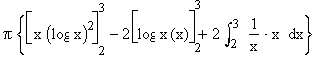 Example 17 Find the volume of the solid generated by revolving the region bounded by y = log x and the x-axis on [2, 3] about the x-axis.