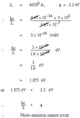 1. When light of wave length 66300A is incident on a metal plate whose work function 2.2