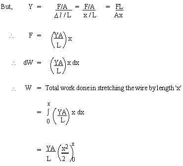 'F' to the length (L + x); then work done by the force in stretching the wire