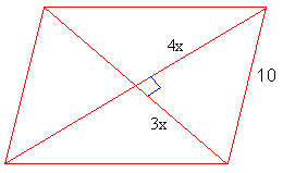 Let the length of the semi-diagonals of the rhombus be 3x and 4x respectively.