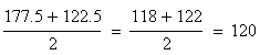 for the 1st class will be 117.5 and 122.5 and the class-mark will