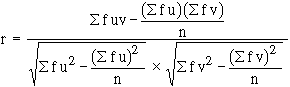 When the number of observations is very large, we need to arrange the data into different classes, which are either discrete or continuous. Items having values falling in a particular class are placed together and those having values falling in another class are placed together. Due to this the whole data is divided into horizontal rows and vertical columns, with one variable placed horizontally and the other placed vertically. The table so obtained is a two-way frequency distribution table and is called the correlation table or Bi-variate frequency distribution table. The formula for calculating and for bi-variate distribution is given by