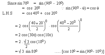 sin 400 = 1/2 [ cos ( 56 0 - 400)