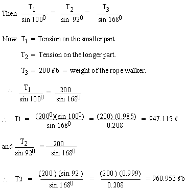 EXAMPLE 21 : A rope walker has weight 200 l b is standing closer to one end of the rope.