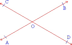CD intersect at O, four angles are formed with vertex O. Consider