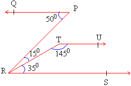 RTU are supplementary angles formed by the transversal TR on line containing