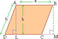 Parallelogram ABML is a rectangle. Therefore area of ABML = a ´ h.
