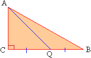 D ABC is a right triangle. m Ð ACB = 900 , seg.AQ bisects seg.BC at Q.