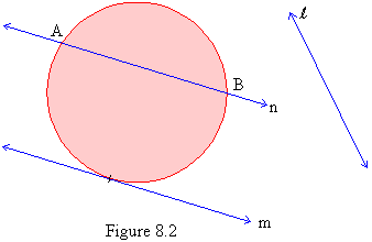 The lines in the plane of the circle are classified into three categories (figure 7.2).