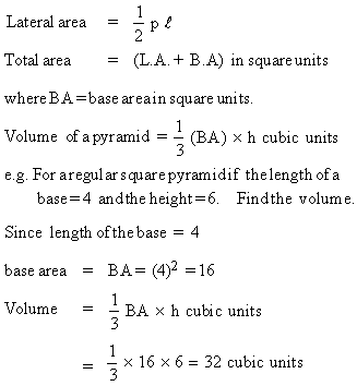 A pyramid is a polygon with all the vertices joined to a point outside the plane of the polygon.