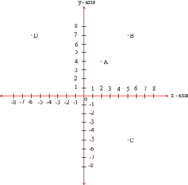 The horizontal line is called the x-axis and the vertical line is called the y-axis. The reference point is called the origin. The x-axis and y-axis are co-planar. These points as well as the points in their plane are called a co-ordinate plane ( figure 9.2)