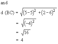 d(AC) = 5, d (AB) = 3, and d (BC) = 4
